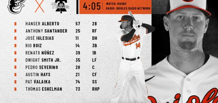 The Baltimore Orioles play the Philipephia Phillies in the final game of a three-game road series. The Orioles have won the first two games and go for the sweep today. Here is the lineup.