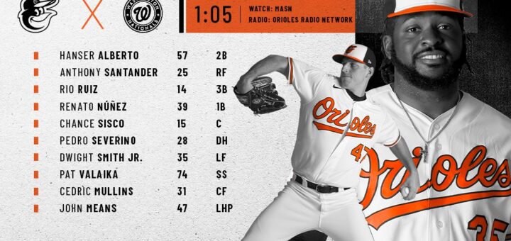 The Baltimore Orioles play the Washington Nationals in the final game of a three-game series. The Orioles won last night 7 to 3 and are going for a series win today. John Means was activated...