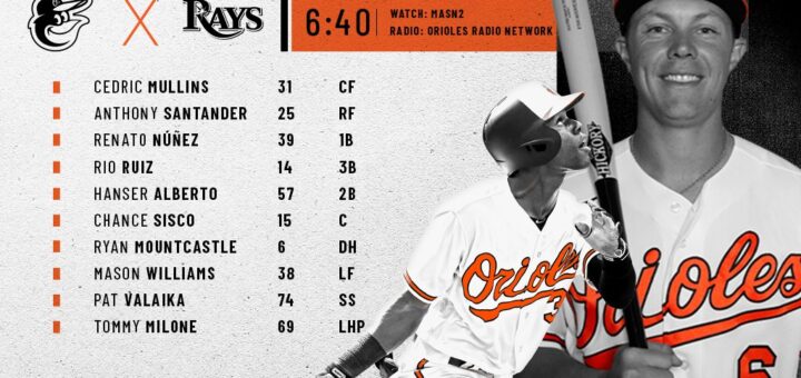 The Baltimore Orioles play the Tampa Bay Ray’s to start a road series. The Orioles have won the past two games and are at .500. Here is the lineup.